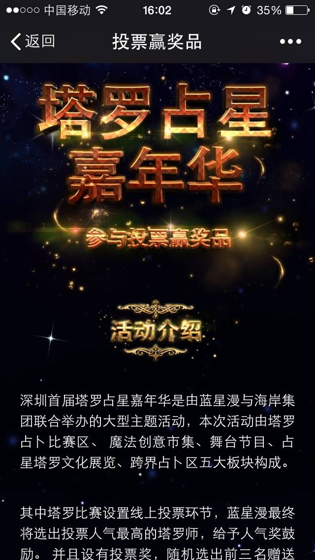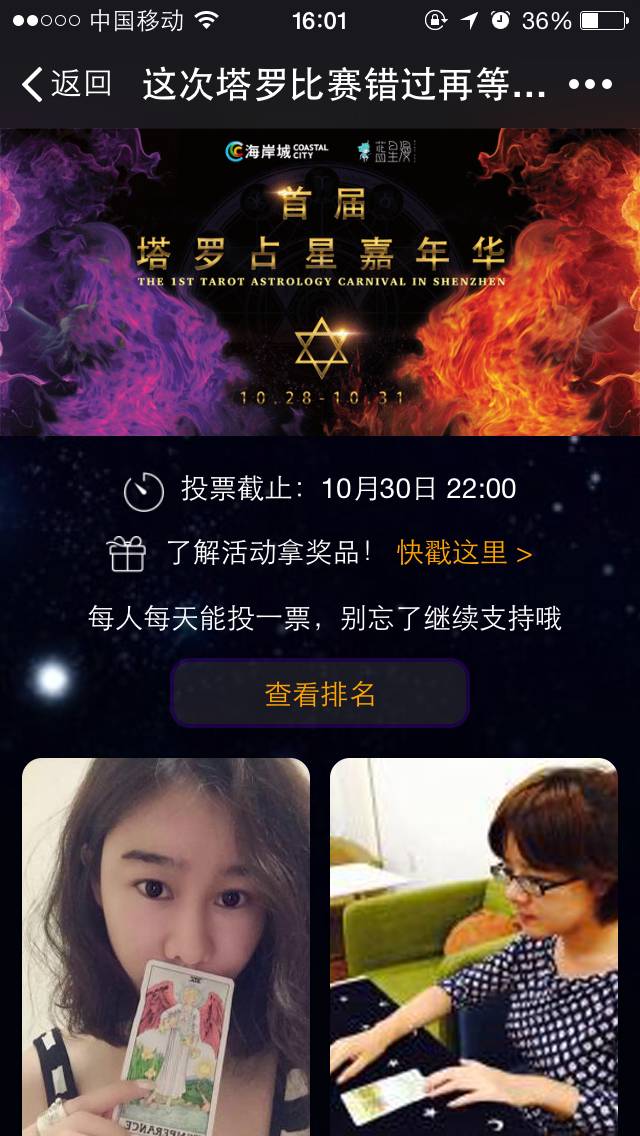 汇天下为海岸城开发定制一款“塔罗占星嘉年华”投票比赛